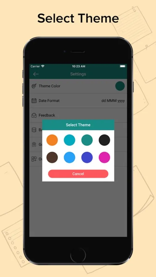 Theme color of the application can also be changed as per the colors mentioned in the select theme list. In Settings the user can access the below mentioned functionalities: