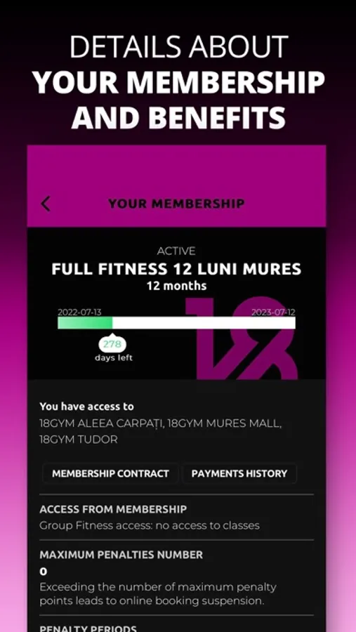 - Details about your account - you can keep track of your membership, see how many days you have left, and its benefits