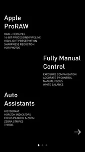 * Auto Assistants: NOMO RAW has all the visual assitants to help you taking better pictures -- Histogram, Horizon Indicators, Focus Peaking & Zoom, Zebra Stripes, Thirds, etc.