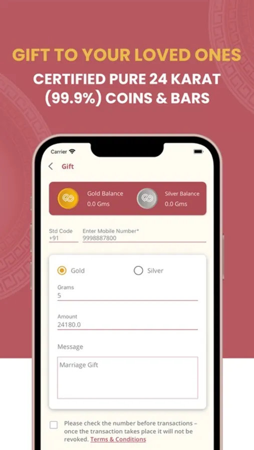Buy: You can buy gold and silver with the minimum amount of just Rs 1 as per live market rates.