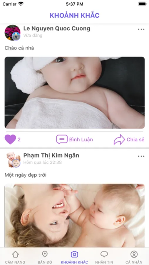 - Chia sẻ khoảnh khắc về bé giữa các người dùng