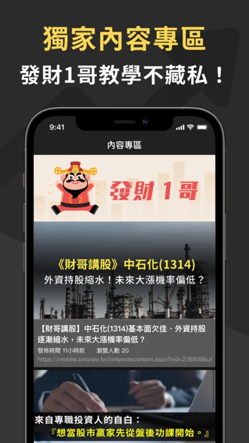 ► 發財1哥本人親自經營的《內容專區》,除了投資觀念教學之外,也會不定期針對近期盤勢、或是熱門個股撰寫分析文章。