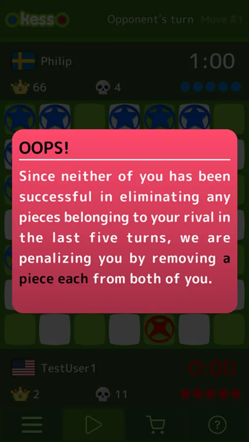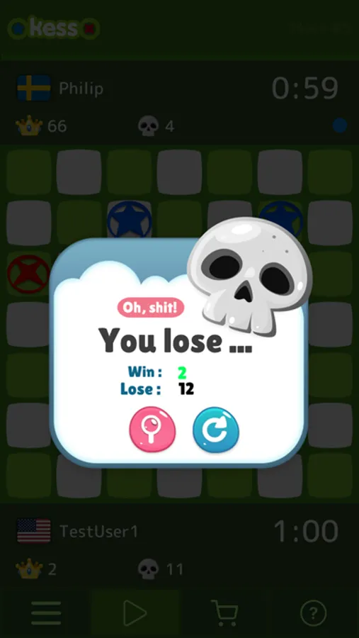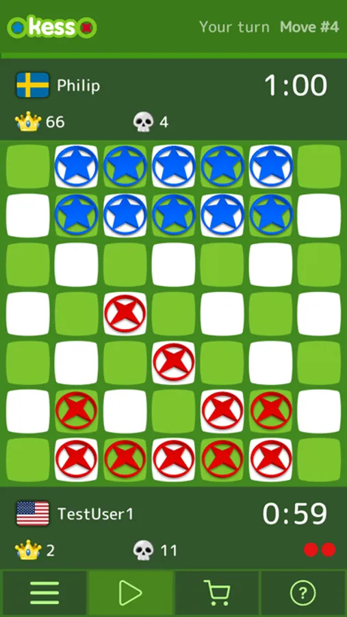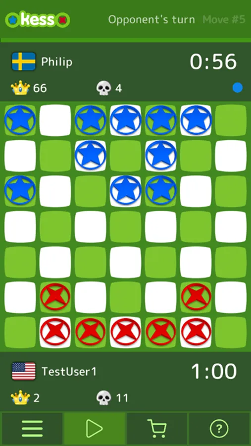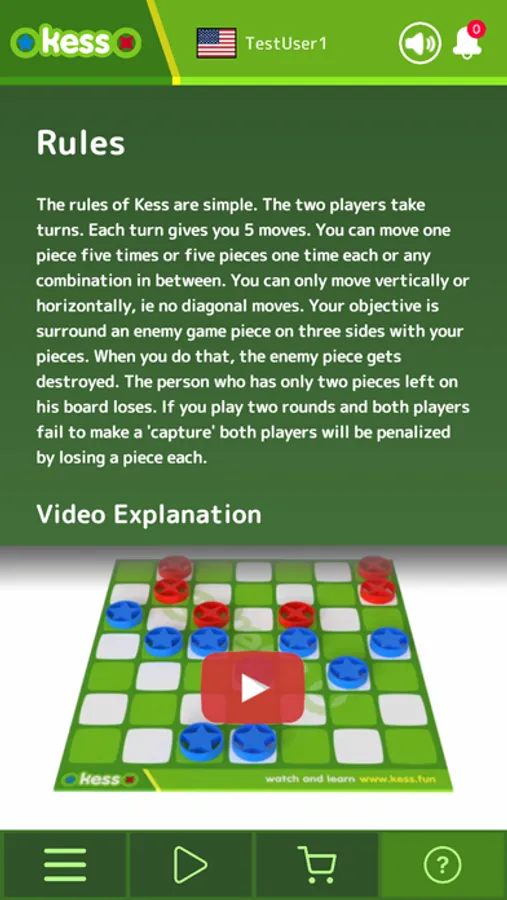 The Kess Board Game is the first original board game to hit the game scene in a long long time. Kess has the strategic thrills of Chess, the ease of Rock Hammer Scissors and the speed of Tic Tac Toe. It looks deceptively easy to play, but quite hard to win. Kess is the new chess, built for those love strategic multi-dimensional thinking , but lack the time to sit down for an two hour match. Once you create a free KESS membership, you can login and challenge players from other countries to matches, and if they accept your challenge a new game room will open for you. You can also invite your friends or family to create free memberships, and you can find them on the Kess platform by username, and have fun playing with them. We do NOT offer in-app chat, in order to protect player privacy and keep it safe for all age groups.