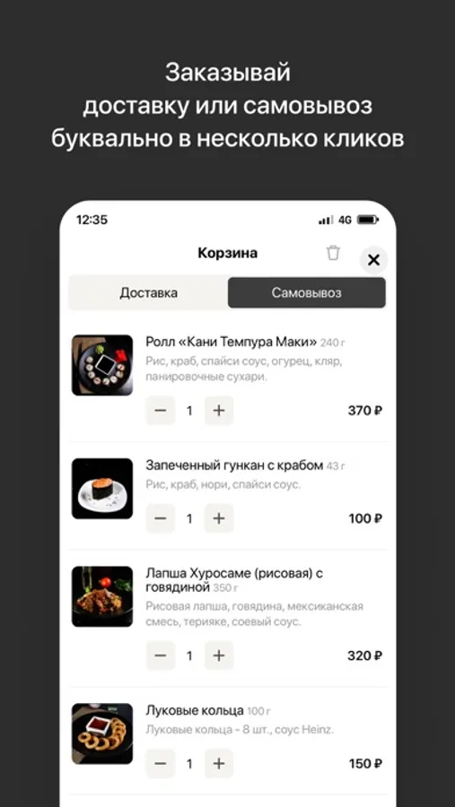 — Быстрый заказ с мгновенным подтверждением через приложение.