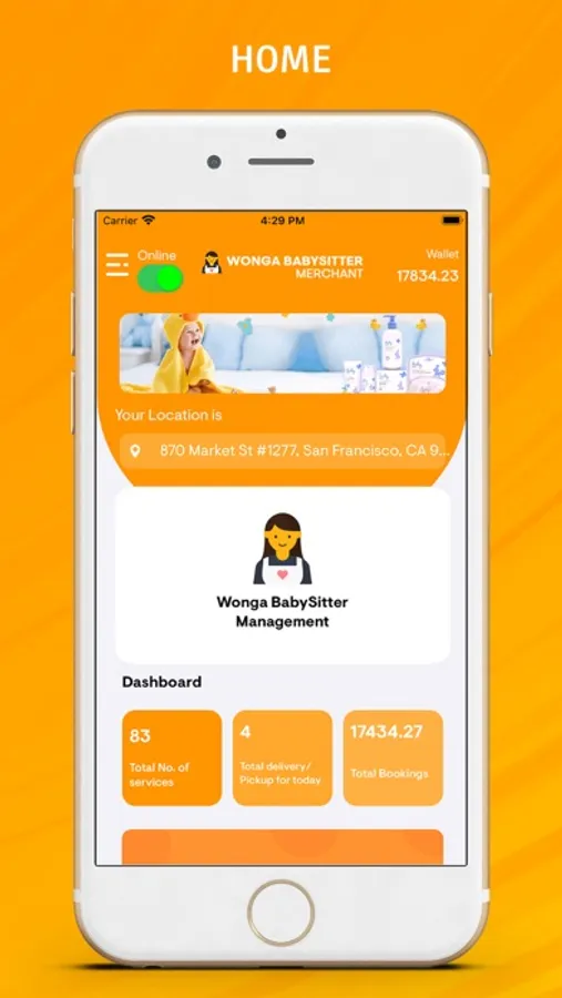 Babysitter, who is in close proximity with the user and according to the user selected preference. The babysitter completes his task and gets paid for the same. No longer he has to go looking out for work.