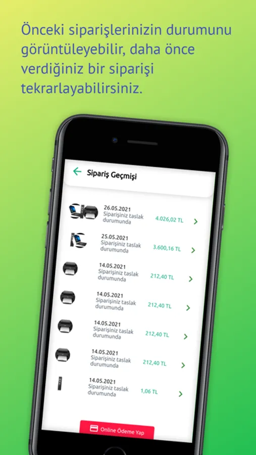 BizimSipariş ile müşteriler hem yeni sipariş verebilir, hem de önceki siparişlerini ve ödemelerini takip edebilir, faturalarını görüntüleyebilir, kredi kartı ile online ödeme yapabilir.