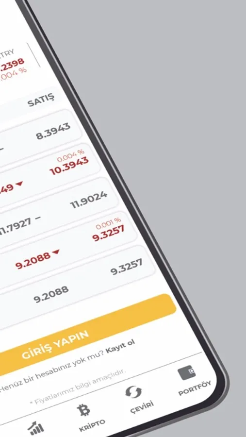 Anlık fiyatlar ve pariteler ile altın, döviz ve ziynet ürünlerini görebilirsiniz. Portföy imkanı sunan, çeviri ekranıyla kendi paritelerinizi oluşturabileceğiniz ve fiyatları anlık grafiklerle takip edebileceğiniz bir mobil uygulamadır.