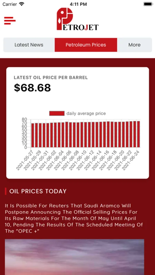 A complete news application from Petrojet that includes everything new about oil news and oil prices in the world