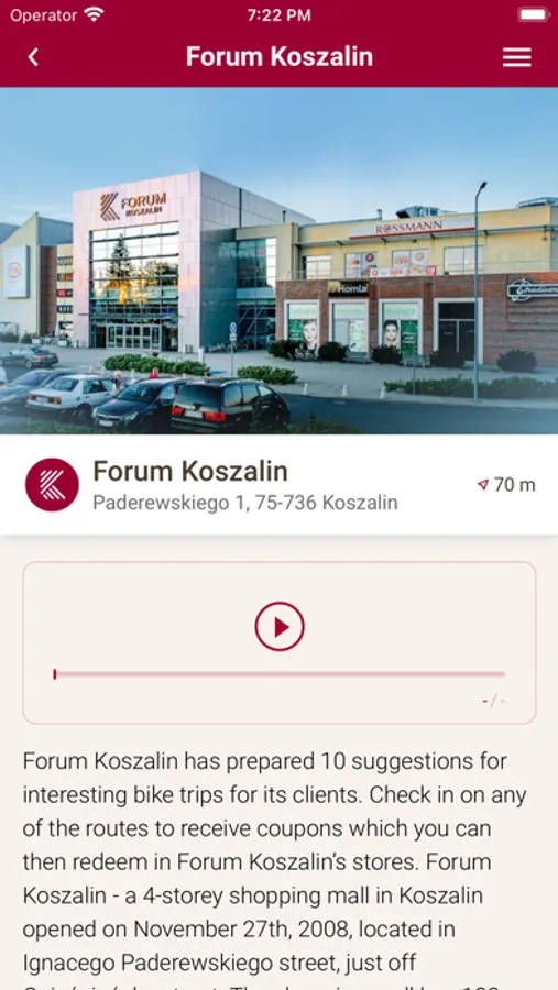 Rowery na Forum is a mobile app for cycling trips enthusiasts. The user can create their own routes using the app’s functionalities. In the app, you will also find 10 ideas for the most beautiful cycling routes in the region.