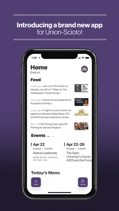 The event section shows a list of events throughout the district. Users can add an event to your calendar to share the event with friends and family with one tap.