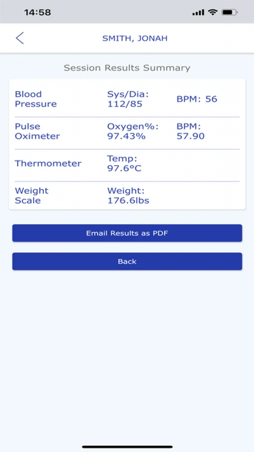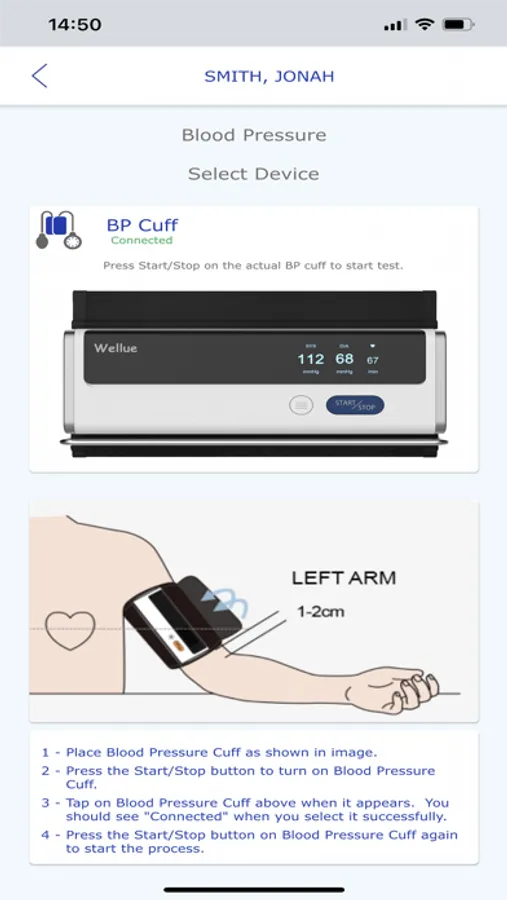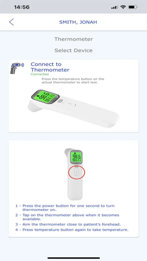 The app works with five FDA approved devices through a Bluetooth connection: blood pressure cuff (2 different ones), pulse oximeter, infrared thermometer, weight scale. All these devices are also certified for medical accuracy.