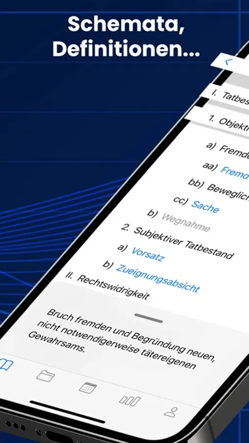 Die JuraHero App enthält alle wichtigen Schemata und Definitionen im Strafrecht, Öffentlichen Recht und Zivilrecht.