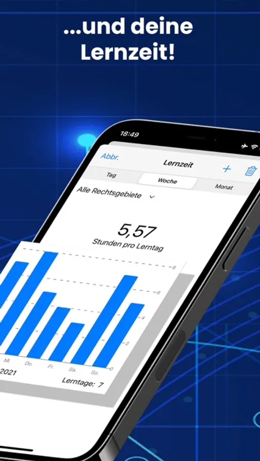 Die App bietet außerdem eine statistische Übersicht über die eigenen Klausurnoten und Lernzeiten.