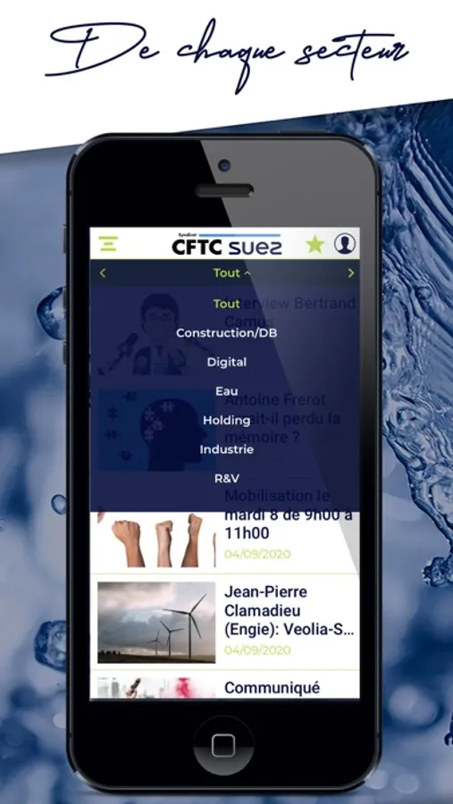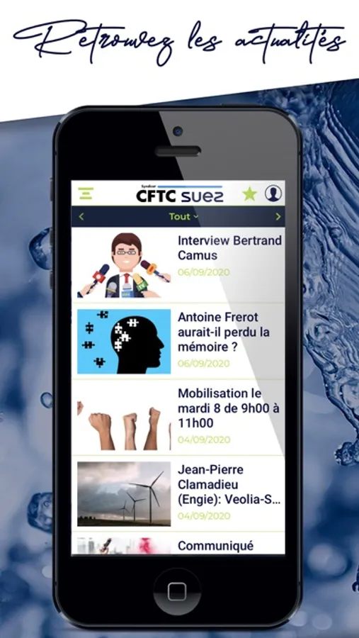 CFTC SUEZ se modernise et se dote d’une application ergonomique, design et simple d’utilisation, afin de permettre à tout le monde de pouvoir accéder en temps réel aux informations importantes, à l’actualité de SUEZ et du syndicat, et aux positions tenues par notre organisation syndicale.
