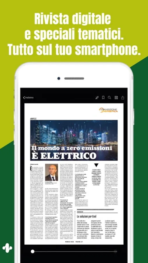 La App di Transizione Energetica contiene i contenuti integrali dell’omonima rivista e del sito www.transizioneenergeticanews.it. L’obiettivo della piattaforma è di fornire informazioni sugli strumenti, tecnologici e no, e sulle esperienze compiute e in via di realizzazione per mettere in atto un’efficace transizione da un’economia di tipo tradizionale a modelli più evoluti e secondo logiche di sostenibilità ambientale. Il target dei lettori è rappresentato da energy manager, Esco, Hse manager, facility manager, consulenti ambientali e tecnici della pubblica amministrazione.