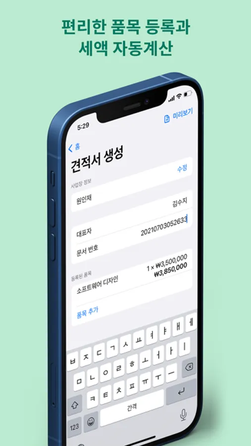 사무실에서도 밖에서도 편리하게 견적서 발행을 시작해보세요.