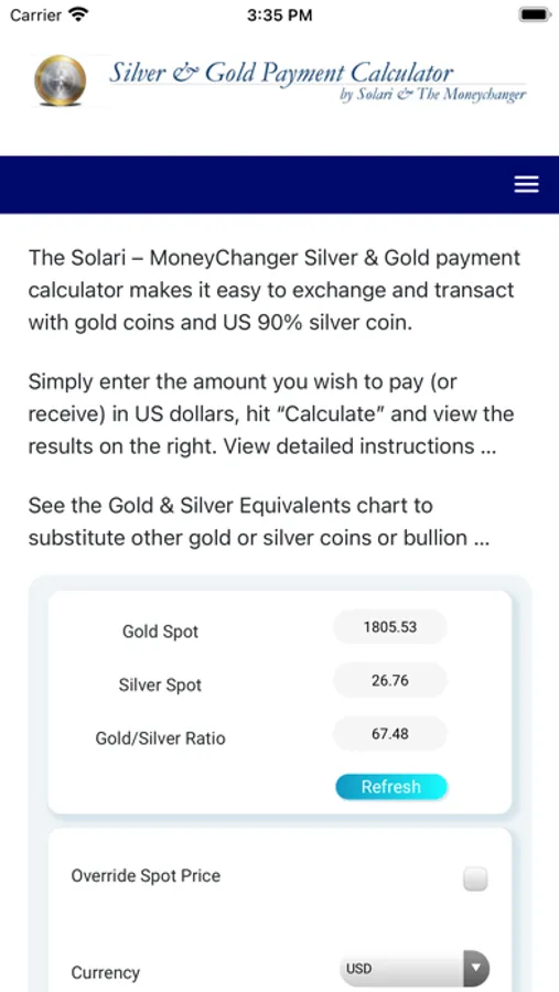 The Solari – MoneyChanger Silver & Gold payment calculator makes it easy to exchange and transact with gold coins and US 90% silver coin.