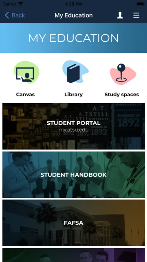 ATSU Go is your one-stop for staying informed, connected, and up-to-date. Students can access their course schedule, grades, see and pay tuition. Get familiar with campus with campus maps and check out an upcoming event. You can also get vital resources related to enrollment, financial aid, learning resources, counseling, and much more!