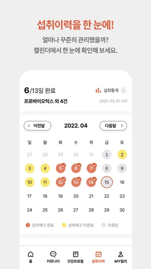 매일 가볍게 체크하는 영양섭취 기록