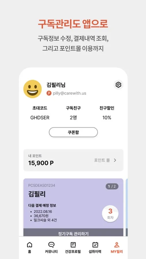 건강관리는 필리케어로 시작하세요.