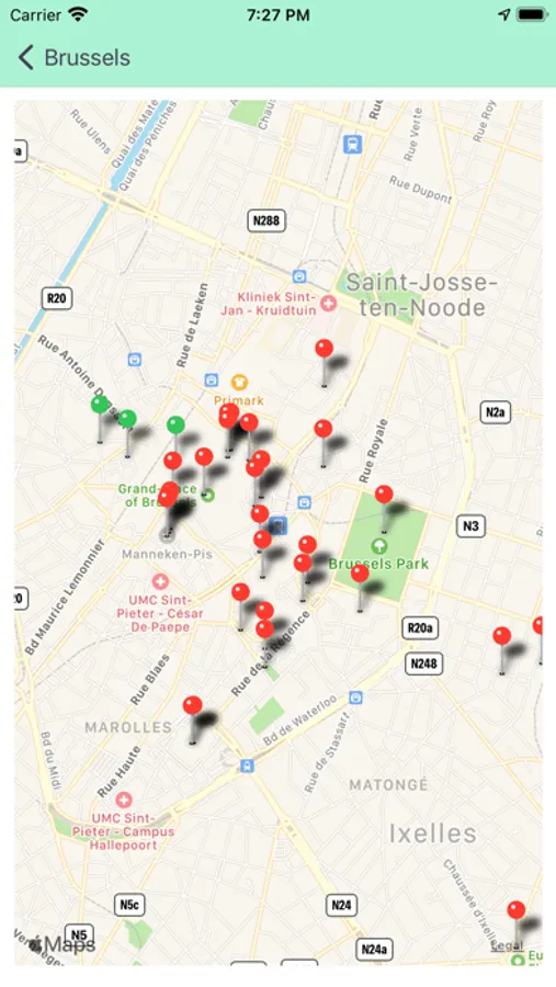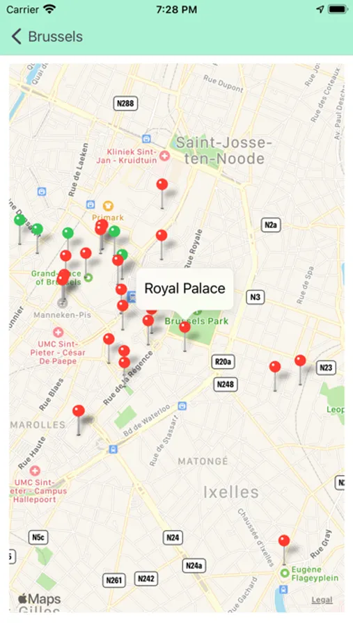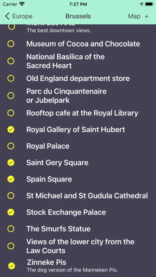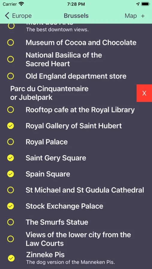 You have an alphabetical list of places or the map version in which the points to visit are in red.