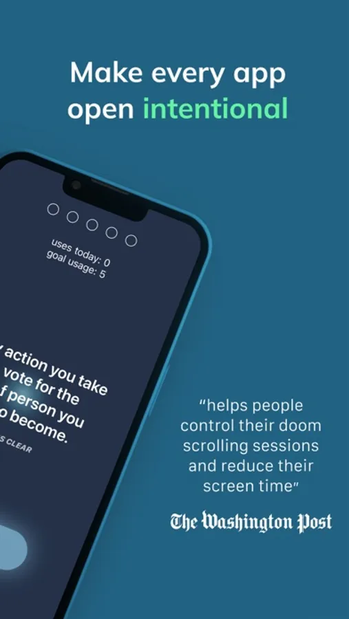 Clearspace gives you the tools to fight phone addiction and block distractions on your phone like social media doom scrolling by providing an interface for you to align your intentions with your usage. Less screen time helps you live in the moment.