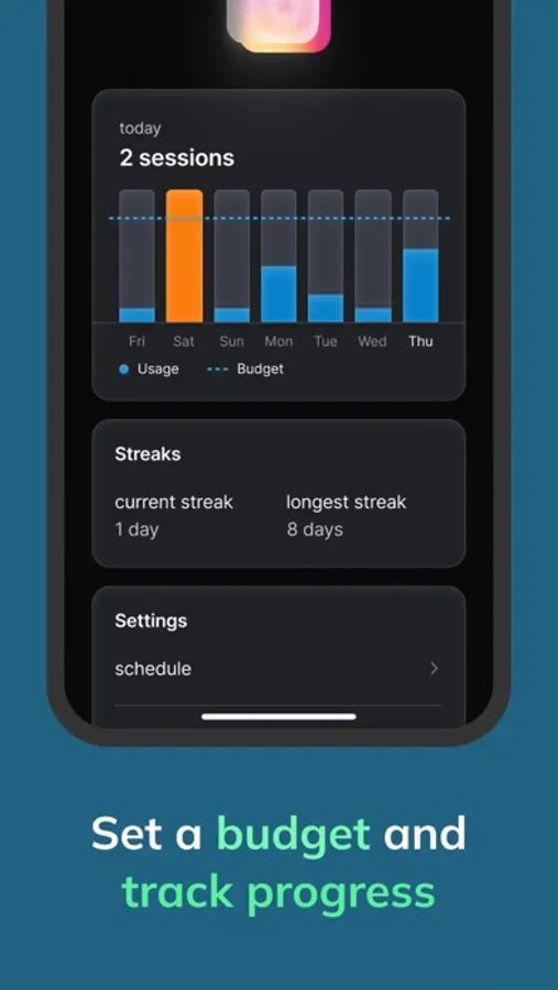 - Screen Time Reporting: Streaks and budgets give you a better look at your screen time data in a way that helps you improve.