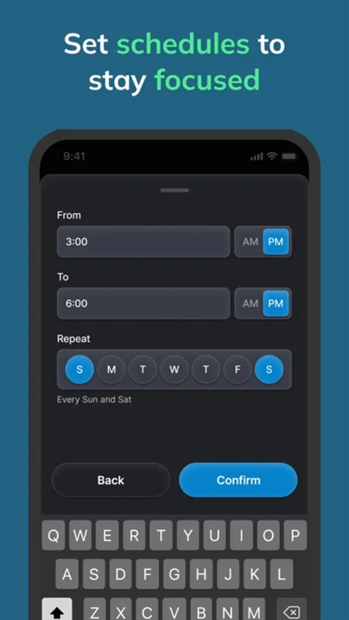 - Block and Limit apps: block any apps you find distracting and limit screen time.