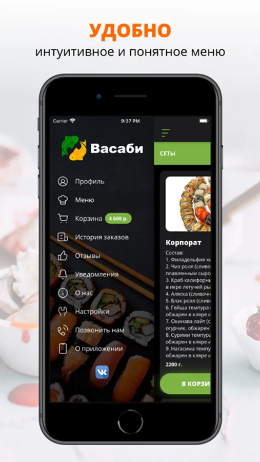 Приложение ВАСАБИ — это удобный и быстрый способ заказа еды!