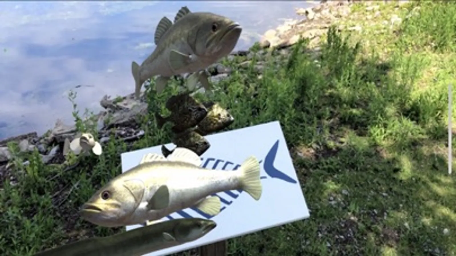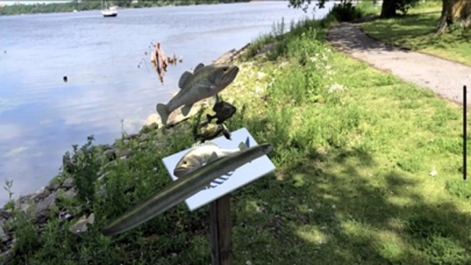 To see this piece, download the “Swimming Upstream AR” app from the App Store. Located at Douglas Fluhrer Park at the shore of the south end, just north of Metalcraft Marine. There is a sign with the symbol of the fish seen on local sewer grates, reminding us that wildlife live in these waterways. Open the app on your mobile device and allow your camera to be used. When you aim your mobile device at the sign, you will see animated content, swimming along the sight lines of the water, as well as around the actual sign itself as an immersive tableau, drawing attention to the declining biodiversity of the fish in this ecosystem. If you can’t go to the park, you can aim your camera at the image on our website at https://belleparkproject.com/projects... from wherever you are, and see the content: it won’t be in context of the water and space, but we hope you’ll enjoy it nonetheless!