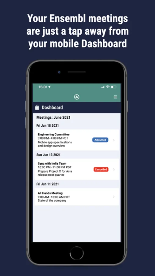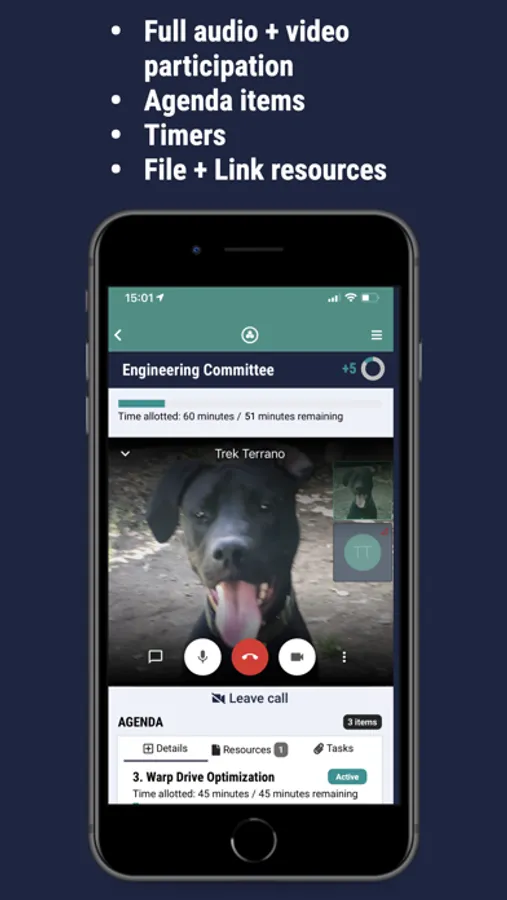 Now users can join an Ensembl meeting on-the-go right from their phones! View meetings, agenda items, attachments, and tasks — and join the call with integrated audio/video conferencing. Timers are present, too, including the omnipresent Tempo Timer indicating the meeting pace to keep everyone on point and on time.