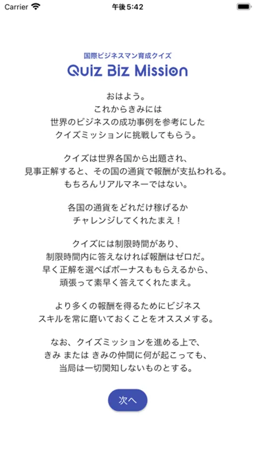 世界のビジネスの成功事例を参考にしたクイズミッションゲームです。