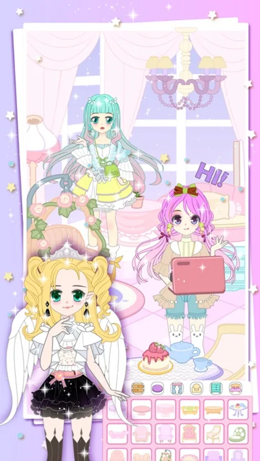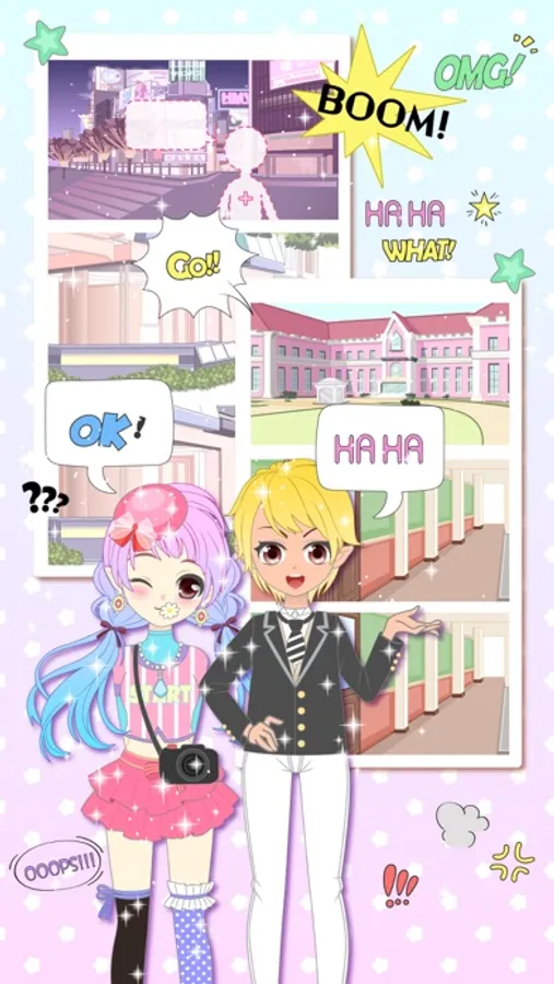 With lots of eyes, noses, mouths, hairstyles, clothes in different colors and styles, you could first create unique and fun characters for your story. Then design a scene for your character using a large amount of furniture, decorations and accessories. The most fun part is to create your one and only storyline! Do you want to write a school love story, a fantasy story or a time travel story? If you don’t know how to start, there are templates for you choose from. The various background and décor materials will enrich your story! No Limits and more fun!