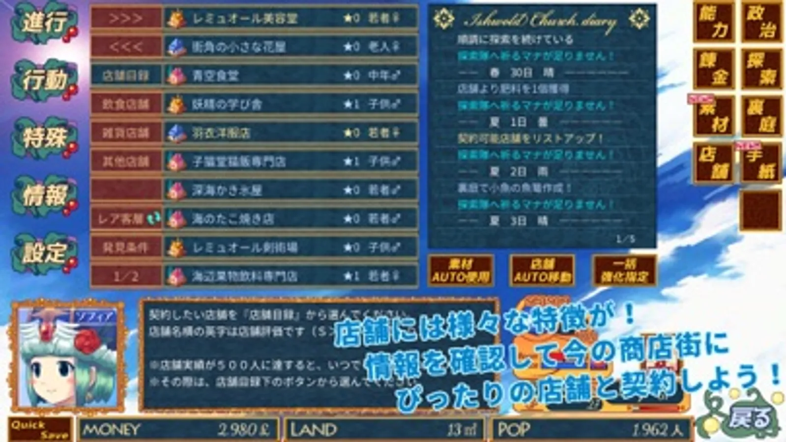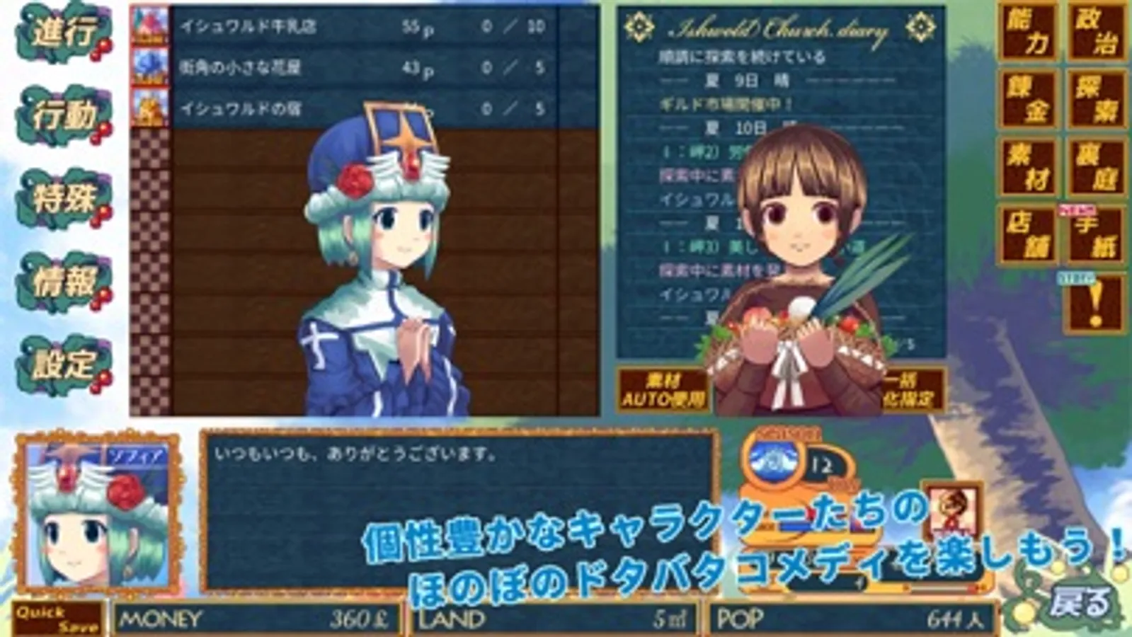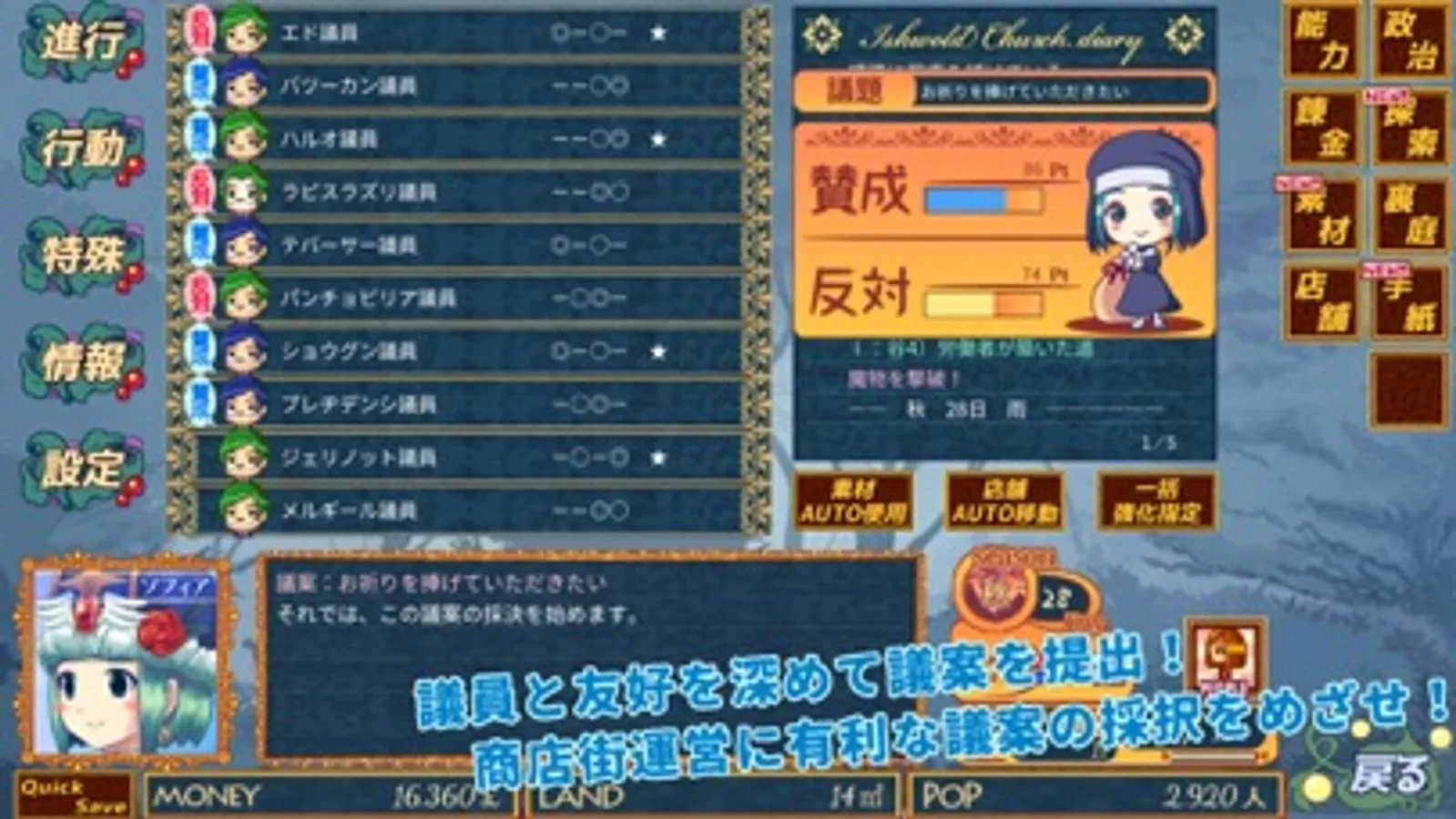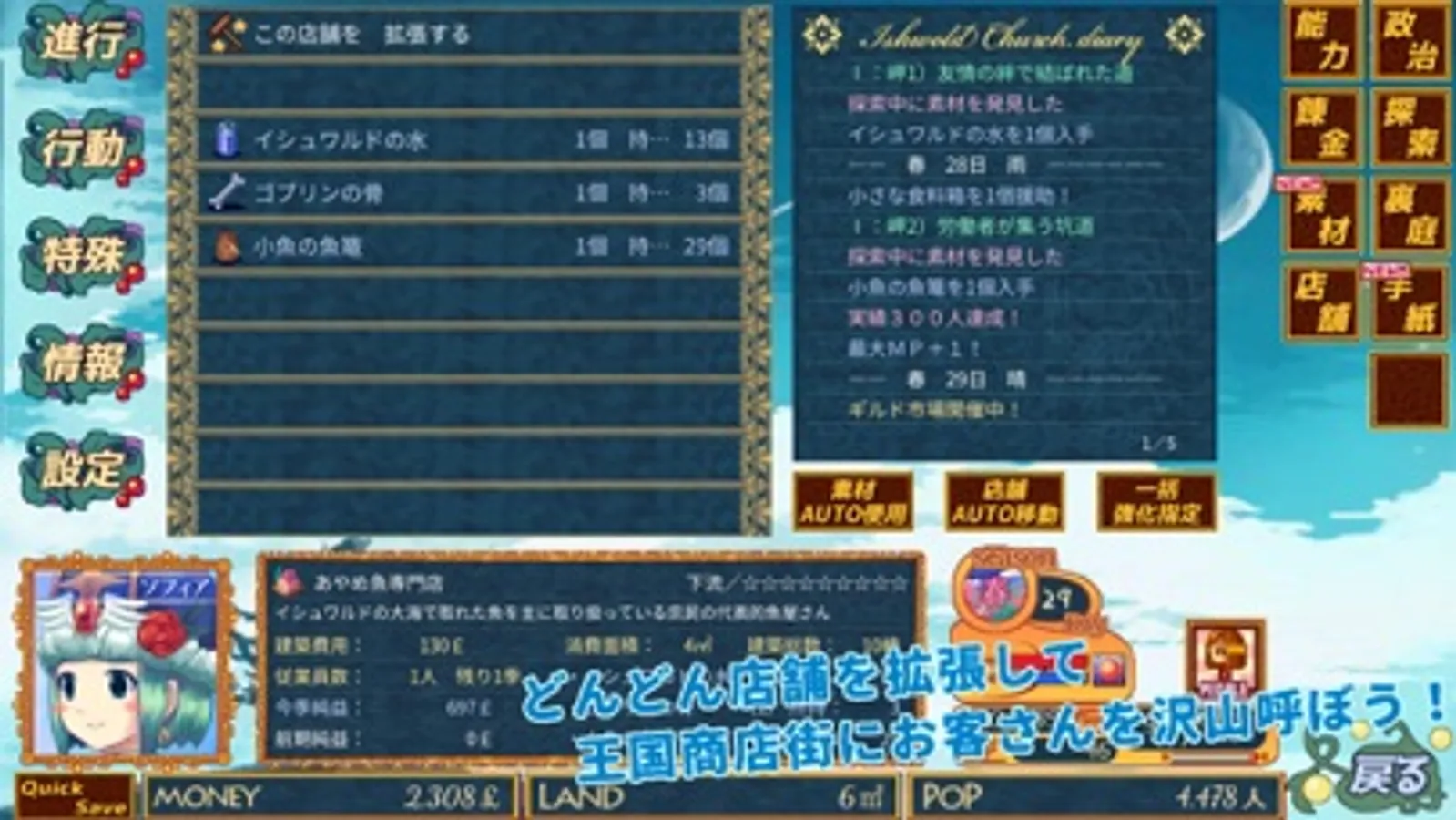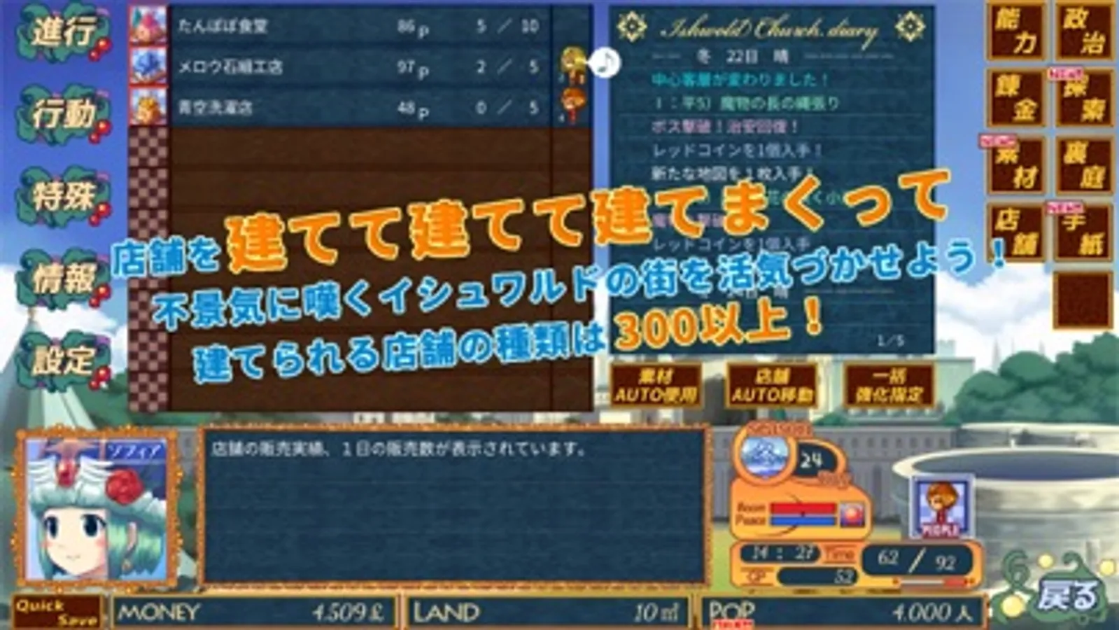 今作は、商店街経営!街のシスター「ソフィア」となって、不景気に嘆くイシュワルドの街に活気を取り戻しましょう!「犬と猫」によるイシュワルドシリーズ作品!寂れてしまった街に活気を取り戻すべく、商店街作りに励みましょう!