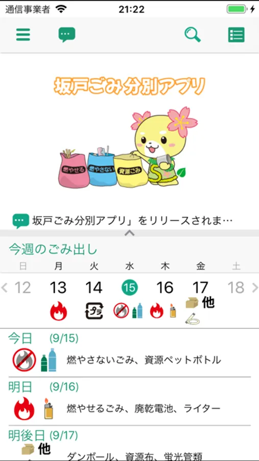 このアプリは、坂戸市内におけるごみの収集日やごみの出し方、ごみ分別辞典、よくある質問など、ごみに関する情報を簡単に確認できるアプリです。