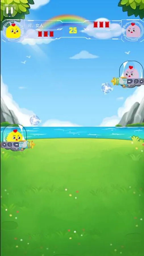 This is a casual small game, players by clicking on the screen to control the chicken jump to attack the enemy's chicken, whose blood is 0 for failure.