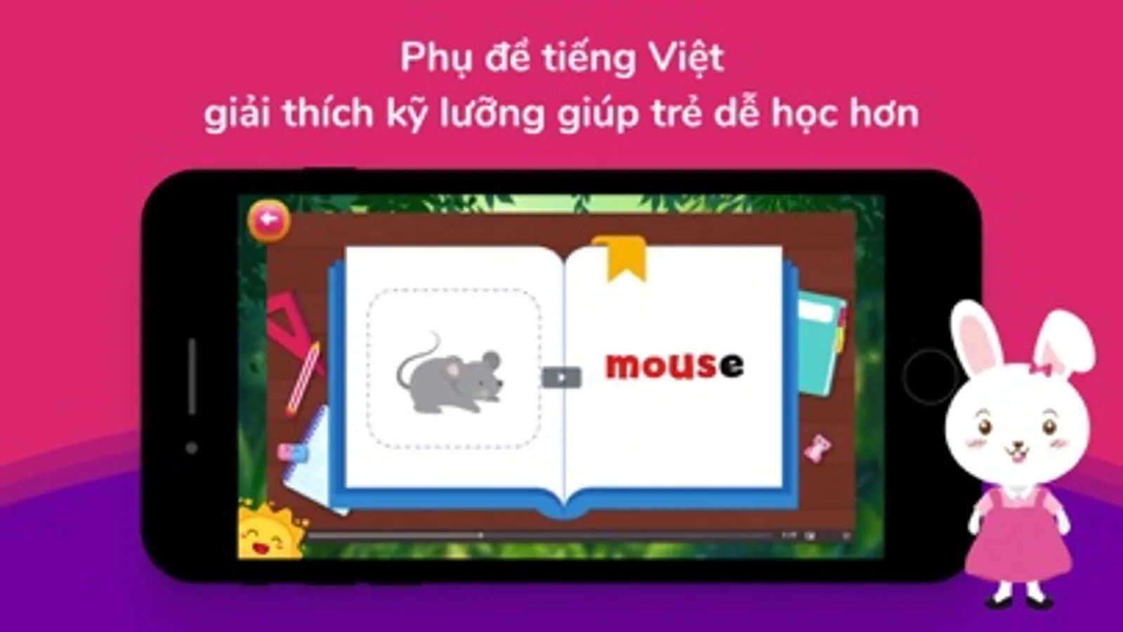 - Học tiếng Anh trẻ em thông qua các video hoạt hình, có game tương tác sinh động giúp trẻ hứng thú học tiếng Anh hơn.