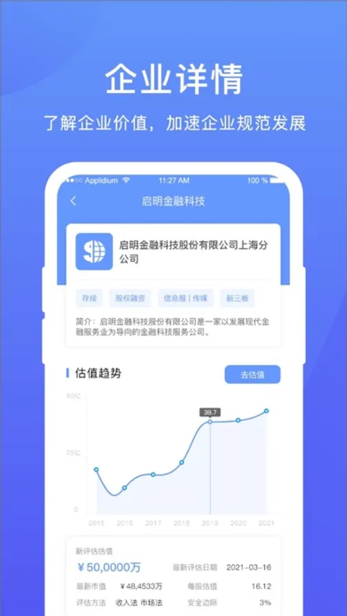 “模估估”是以提供线上企业估值系统为基础,在估值系统之上建立未上市企业报价系统,链接企业与各方机构用户,为一级市场各方搭建起综合金融服务平台。