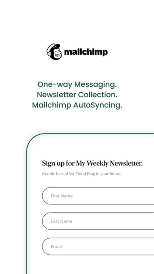 Enable messaging and newsletter services, with automatic syncing to Mailchimp.