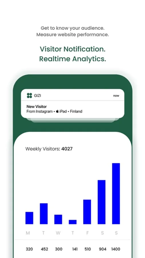 Stay informed with real-time visitor notifications and dive deep into insightful analytics.