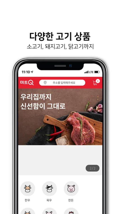 이제 주문 즉시 썰어 신선함이 살아있는 신선한 고기를 1시간 내로 편하게 받아보세요.