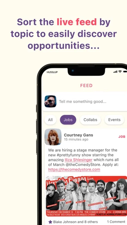 HUSSLUP is a searchable network that connects creative talent in media and entertainment (writers, producers, directors, editors, and more) to each other and to the companies that need them. With HUSSLUP, you finally have your own platform to create and control your professional profile, connect with and message other creatives, start or join private communities based on your skills and interests, and discover exciting jobs at the studios and production companies you love. Our platform is built by creatives for creatives to transform Hollywood’s old clique with one click. Join us! HUSSLUP is currently invite-only as we scale but you can sign-up for the waitlist in the app.