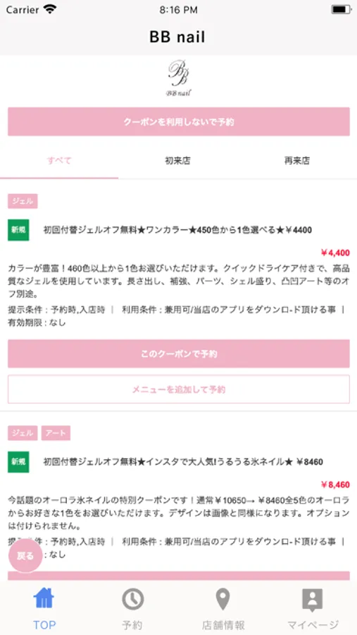 お得なクーポンが配信されます。ネット予約時にクーポン利用での予約も可能なので来店時もスムーズに施術頂けます。