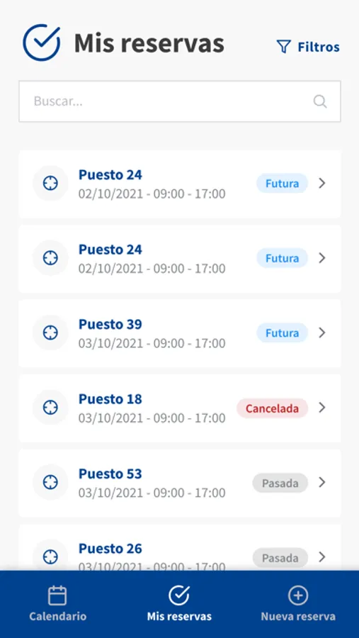 • Permite proporcionar a los usuarios reservar puestos físicos de las oficinas: permite navegar entre los planos de la oficina para seleccionar el puesto adecuado. Estos puestos serán fácilmente identificables también gracias al buscador del modo listado para que puedas hacer tus reservas.