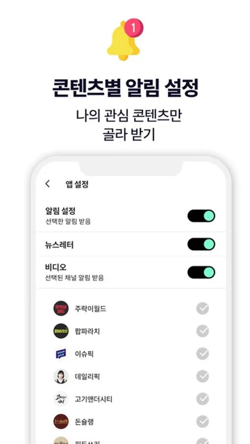 14F 콘텐츠 중 내가 보고싶은 콘텐츠만 선택해 알림 설정을 할 수 있습니다.