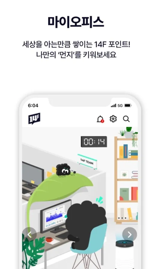 14층 사원이 되어 영상과 뉴스레터를 즐기다보면 자동으로 포인트가 쌓여 나만의 오피스를 꾸밀 수 있습니다.