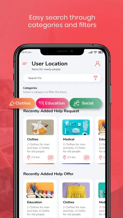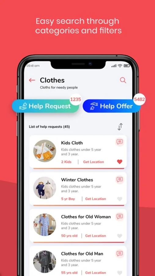 With its geolocation system, HipSmile allows you to find easily announcements (donations or requests) near you.