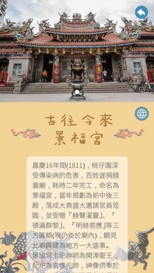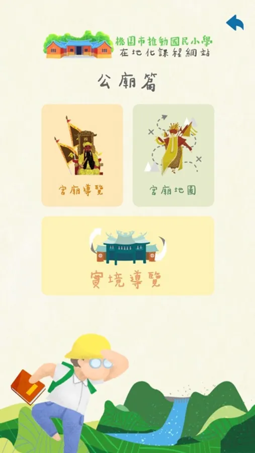 古蹟做為一個文化教育的場所,在介紹古蹟歷史與文化意義上,古蹟導覽能帶給大眾一種不錯的戶外學習方式,因為古蹟導覽並非只是單純的「閒逛」或「遊玩」而已。古蹟導覽具有重要的社教功能,它不僅提供了學習機會,也是終身學習資源獲取的最佳場所。由桃園市虛擬代表人物阿桃、阿源解說古蹟歷史,突顯在地化課程意義,透過互動教學及遊戲,讓學生學習增添趣味化。