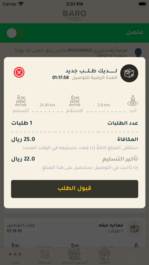 تطبيق فرسان برق هي خدمة التوصيل الفوري والتوصيل في نفس اليوم