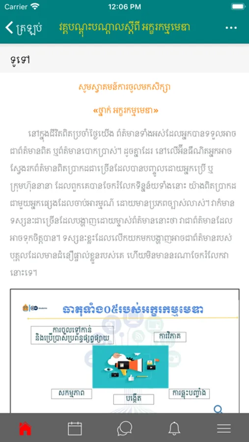 MoEYS provides a new educational environment for educators and learners wherein the platform enables tools for creating resources and activities. Some interactive elements include, assignments, chats, forums, quizzes, survey questionnaires, task submission between teachers and learners etc. Unlike existing online learning videos that promote passive learning for learners, this platform allows better cooperation among the learners, the educators and the students. With the additional use of Learning Management System, as a complement to traditional class-room, face to face instruction can impact the students learning and understanding with positive attitudes. Also, MoEYS was launched this platform to support its equivalency program and for life-skill training. Accessibility, usability and student collaborative learning can be improved, producing higher motivation among learners and the educators.